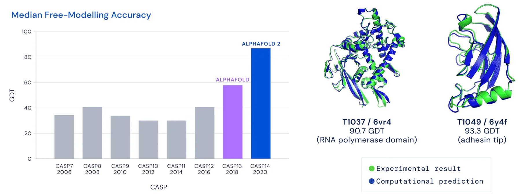 Not only did Alphafold show promise in improving the accuracy of protein structure prediction, but in doing so computationally, it makes the whole process many times faster and less expensive, which can significantly expedite the development of new therapies.